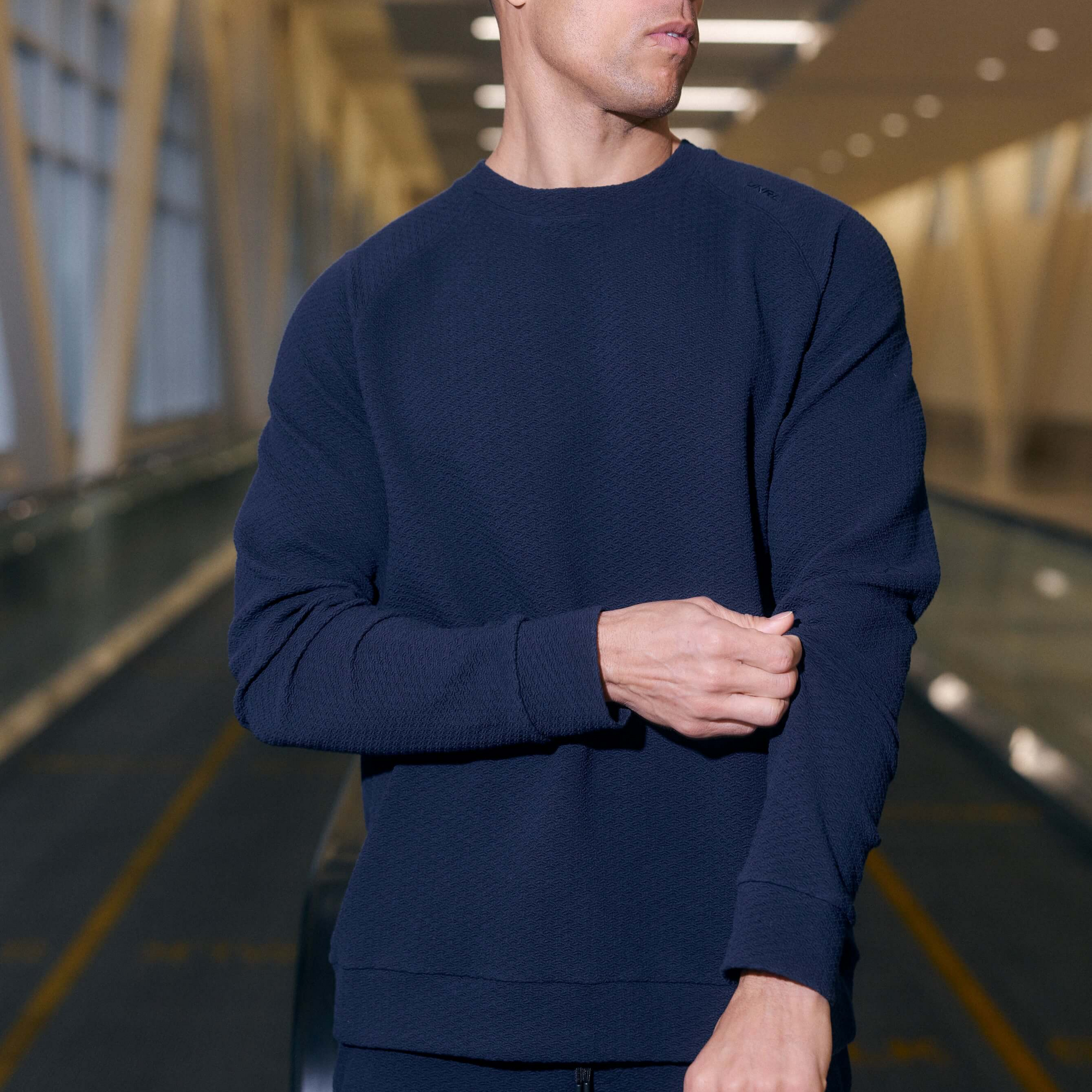 Engineered for comfort and movement. The Elevation Crewneck features our custom textured knit fabric in a streamlined, hood-free silhouette. Midweight with 4-way stretch, it delivers a refined balance of performance and comfort.